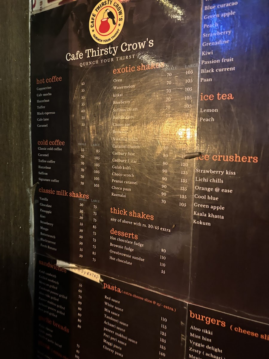 Welcome to Cafe Thirsty Crow's, an inviting spot located in the heart of Karnal's Bhagat Singh Market. This cafe has carved a niche for itself with its refreshing menu that caters to various tastes and preferences, making it a must-visit for food enthusiasts.